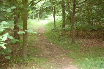 The photos here shows a typical gate that is used frequently around the area. Click the photo to view a larger image. This is a kissing gate, with a large internal area. It is just about the right size for a pushchair, so may be a bit small for some wheelchairs. Some of these are a little overgrown, with nettles growing through into the curved area. In this case you need to be careful not to sting your childs legs if they are in a stroller type of push chair.