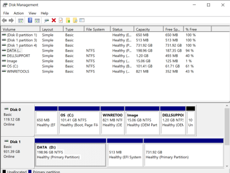 It will then tell you the minimum size USB drive which you can insert to make a backup. Or at least that’s the theory, mine said that I needed a 16GB usb drive, so I inserted a 32GB usb thumb drive. The application then gave an error message and crashed. It turns out that this is due to an unusual partition format from a previous use. There is a Windows partition manager application “Disk Management”, but that was unable to deal with the drive, so I had to use the command line application diskpart. There is a guide available at: Command Windows website, but USB drives are so cheap now that it may be easier to just buy a new one and then reset the USB drive in Linux after sorting out the dual boot.