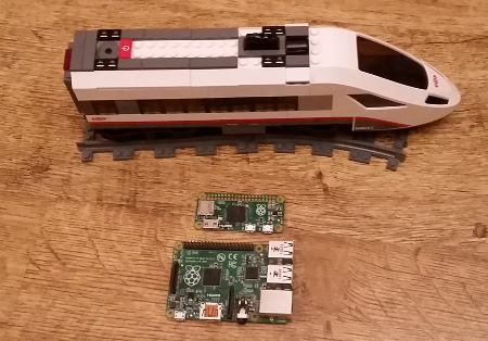 Take a look at the photo below which shows a Lego train locomotive alongside a PiZero and a Raspberry Pi model B computer. Now there is already scope for controlling the train with the Raspberry Pi using infrared (which is something I’m currently working on), but the regular Raspberry Pi is too big to consider including it within the train itself. With the PiZero the board is now small enough to include within the Lego toy itself.